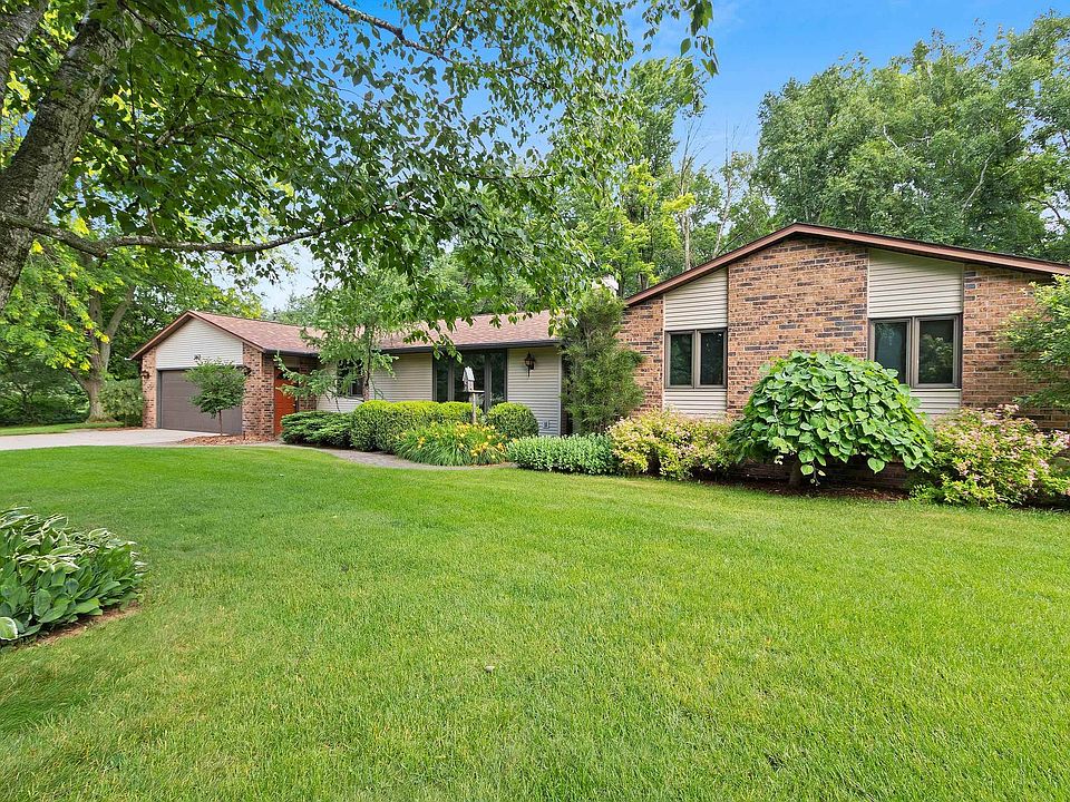 Nestled on a picturesque 1.74-acre lot (per assessor), this 4 bdrm walk-out ranch lives up to the name of its quiet street--Peaceful Cir. The beautifully landscaped yard, complete w/ a cascading pond & wooded backdrop, looks like they're straight from the pages of "Better Homes & Gardens." Inside this spacious & thoughtfully designed floor plan, the kitchen features solid surface counters, stainless steel appliances, & is open to the great rm that boasts a floor-to-ceiling brick (gas) fireplace. French doors lead to a four-seasons room, offering breathtaking panoramic views. The expansive LL includes a generous rec rm, a versatile flex space, a den/office & a full bath-perfect for work, play or guests. Additional highlights include: 1st flr laundry, an oversized garage & numerous updates!