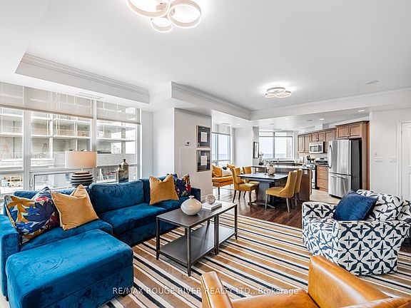 Overlooking beautiful Lake Ontario at Pearl & Lakeshore, 360 on Pearl rises above the restaurants, designer boutiques and cafes along Burlington's downtown waterfront. This luxury high-rise features an entertainment lounge, theatre room, fitness & steam room, and 18th floor common rooftop terrace which offers unparalleled views of Lake Ontario and the surrounding cityscape. 360 on Pearl offers 24/7 security staff and concierge services. This beautiful 2-bedroom, 2-bathroom corner unit offers an open, airy atmosphere with 9-foot ceilings and stunning floor-to-ceiling windows that bring in natural light and showcase scenic views. The spacious layout includes custom shades, laminate flooring, and freshly painted walls. The gourmet kitchen features a large pantry, gas stove, granite counter and a cozy breakfast nook overlooking a serene lake. A corner unit with oversized balcony with two entries offers ample outdoor space to relax and enjoy lake view. Spacious primary bedroom is a retreat with access to the balcony, 3 pcs ensuite with a walk-in shower, walk-in closet and additional double closet for more storage. The second bedroom is designed for flexibility, whether as a guest room or home office, featuring a built-in Murphy bed that folds away seamlessly, maximizing floor space. Large window, Built-In Storage and desk for office use, perfect for remote work or study. Ensuite laundry w/built in storage. A true walkable neighborhood. Downtown Burlington location provides easy access to fine restaurants, boutiques and Burlington's waterfront trail. Public library and Performing Art Centre nearby. Area trails support active outdoor living. Conveniently close to major highways, GO Station.