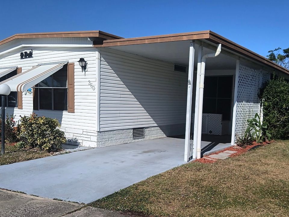 -- Spacious 1,450 sq ft -- 3 Bedroom, 2 Bath in Great Condition on a Corner Lot!! Located in Lakewood Village, a 55+ Retirement Community in Melbourne, Florida. This home is being sold Partially Furnished. Major Appliances Include: Washer, Dryer, Refrigerator, Stove, Microwave, and Dishwasher. **Updated PVC Plumbing, Metal Roof, (NEW) Water Heater, Renovated Master Bathroom, (NEW) Stainless Steel Glass top Stove with matching Hood, and (NEW) Lifetime Vinyl Plank Flooring. This home also features a Covered Car Port, Central AC w/ heat pump, a Large 10 x 17 attached Storage Shed, and an 11 x 20 Enclosed Florida Room. Lakewood Village's market-rate Base Lot Rent is currently $876 per month for a corner lot. Water, Sewer and Trash are billed through the park. MUST BE PARK APPROVED to purchase. Call today to schedule a showing! Lakewood Village is a desirable neighborhood conveniently located near beautiful white sandy beaches and just a short drive to the Orlando Melbourne International Airport. This quiet, age-restricted 55+ community is loaded with amenities, including a Fitness Center, Game Room, Heated Swimming Pool, and Shuffleboard Courts, to name a few. All listing information is deemed reliable but not guaranteed and should be independently verified through personal inspection by appropriate professionals. Our company does not and cannot guarantee or warrant the accuracy of this information or condition of this property. Measurements are approximate. The buyer assumes full responsibility for obtaining all current rates of lot rent, fees, and pass-on costs. Additionally, the buyer is responsible for obtaining all rules, regulations, pet policies, etc., associated with the community, park, or home from the community/park manager. Our company is not responsible for quoting said fees or policies.