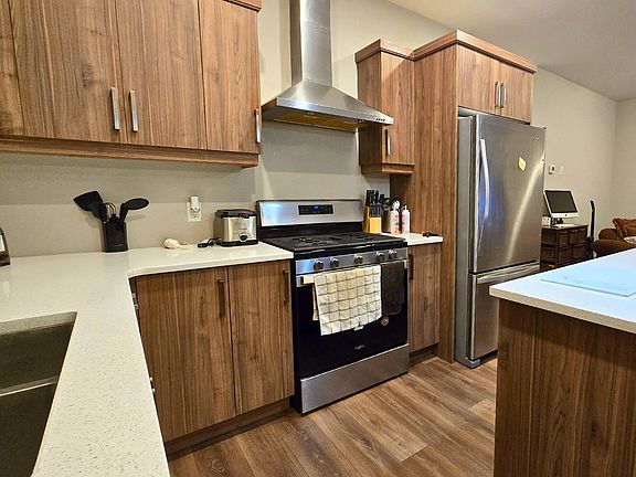 The main floor boasts an open-concept design with 9-foot ceilings, featuring a modern kitchen equipped with quartz countertops, stainless steel appliances, and an island perfect for meal preparation and casual dining. The adjoining living area opens to a fenced backyard, providing a private outdoor space for relaxation or entertaining guests. Upstairs, the primary suite offers dual closets and a luxurious 4-piece ensuite, while two additional bedrooms share a well-appointed bathroom. With second-floor laundry facilities and a finished basement that can serve as a home office, recreation room, or additional living space. Residents will appreciate the proximity to local amenities, including shops, restaurants, and parks, as well as easy access to major highways for commuting.