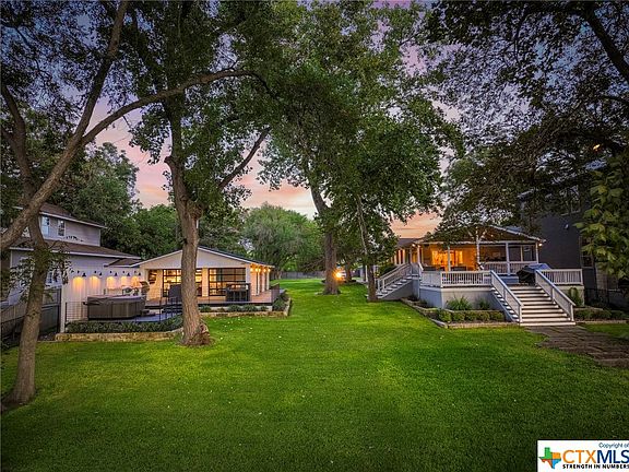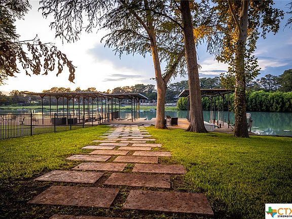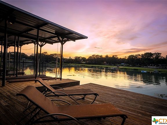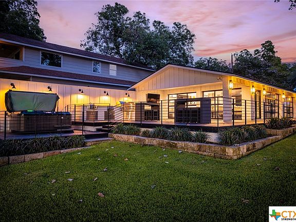 Amazing waterfront modern farmhouse and icehouse on Lake Dunlap! Enjoy this updated entertainer's dream house. Time to make some lake house memories with family and friends. Both structures have been taken down to the studs and completely renovated. The main home is open and bright, with hardwood floors, granite counters, stainless appliances, and a walk-in master shower. Roll up the icehouse doors, and let the good times begin! The open concept icehouse has a full kitchen, huge bar, bath, low-maintenance concrete floors, and living areas inside and out. A sprawling patio with an outdoor kitchen and hot tub is perfect for gathering with family and friends. Private gate and TREX composite perimeter fencing for added privacy. Mature trees. Beautiful and relaxing.