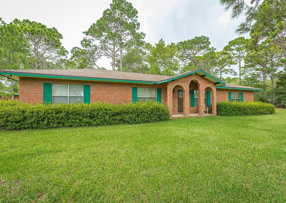 Brick home on a paved road adjacent to a picturesque Florida Carrabelle River. This 2250 square foot spacious brick house is nestled on approx 1.6 acres, which includes a peaceful 1/4 acre pond surrounded by native flowers perfect for bird watching, with a well-kept lawn. This home has gone through an extensive renovation. Recent renovation includes architectural shingle roof with Hardy Board Soffit and Facia Board. laminate flooring runs throughout, stovetop, built-in microwave, Kenmore side by side refrigerator. The kitchen features lots of cabinets; recently painted bedrooms and baths with tile floors. Trane Central HVAC. Water heater approximately 3 years old. All the windows recently replaced with double-pane insulated glass.