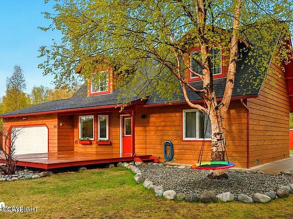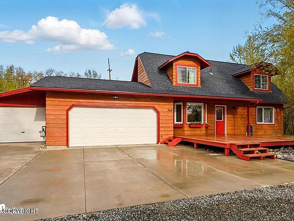 Fantastic home on quiet cul-de-sac in the well-loved & friendly Brentwood Heights neighborhood. This 2 story home features 4 bedrooms, 2 baths, an open & inviting floorplan, bright sunroom with wood stove, coffee/wet bar, 3 car garage, private backyard & barn/ workshop, tons of recent modern upgrades & updates including newer kitchen, newer baths, front & back decks, newer roof & water heater.-Renovated kitchen with new cabinets, beautiful hood vent, quality countertops, stainless steel appliances, & recessed lighting. -Sun room runs along back of home, providing a warm and bright spot to cozy up to the woodstove or host large gatherings. -Oversized & private lot with verdant lawn, beautiful new decking and paving, spacious barn or workshop, third garage bay with doors to front and back that makes for great toy storage. -So many updated items: New appliances, newer hot water heater, new roof, new flooring in main living spaces, new trim, new piping for well,new insulation in crawlspace, new light fixtures, new gutters. Entire exterior was re-stained in May. -Excellent quiet location towards the back of Brentwood. Super easy commute to downtown Wasilla, Palmer. or to get on the highway to Anchorage.