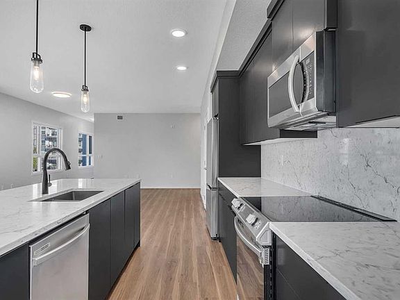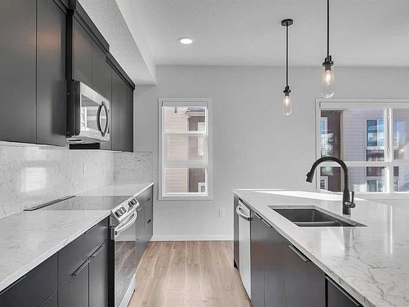 1386 Sq Ft | 3 Bedrooms | 2 Bathrooms | Huge Balcony | Heated Underground Parking | Harvest Hills NE Calgary Welcome to this stunning and expansive 1,386 sq ft condominium in the highly sought-after community of Harvest Hills NE Calgary — offering serene nature-inspired living with modern luxury and comfort. This is truly one of the largest and most well-maintained units in the complex, thoughtfully designed for both functionality and style. As you step inside, you are greeted by a spacious and inviting foyer, setting the tone for the elegance that follows. The open-concept layout seamlessly connects the grand living and dining areas, highlighted by large, sun-filled windows that flood the space with natural light, creating a warm and welcoming atmosphere. This generous living area provides the perfect setting for entertaining family and friends or simply relaxing in comfort. The gourmet kitchen is a true chef’s delight, featuring upgraded cabinetry extending to the ceiling, premium stainless steel appliances, a large quartz island, and a quartz backsplash — a rare and luxurious feature. A walk-in pantry provides added convenience and storage space. The kitchen flows effortlessly into the dining and living areas, offering an ideal setup for gatherings and everyday living. The primary bedroom suite is a peaceful retreat complete with a 4-piece ensuite bathroom and a spacious walk-in closet. The second bedroom also includes its own walk-in closet, while the third bedroom can easily serve as a guest room, home office, or nursery. A second full bathroom provides comfort and convenience for residents and guests alike. The laundry room is impressively spacious, equipped with side-by-side washer and dryer, upgraded cabinetry, and additional storage, making everyday chores effortless and organized. Step outside to the huge private balcony—a rare find—with unobstructed views, perfect for relaxing or entertaining. Equipped with a BBQ gas line, it’s the ideal space to enjoy summer evenings with friends and family. Adding even more value, this unit comes with titled heated underground parking, ensuring your vehicle stays warm and protected throughout Calgary’s cold winters. The exterior of the building features durable, hail-resistant cement fiber siding, providing extra peace of mind and lasting curb appeal. Nestled in a peaceful, family-friendly neighborhood, this home offers an unbeatable combination of tranquility and convenience. Enjoy nearby parks, green spaces, and scenic walking and cycling trails, as well as tennis and pickleball courts. Shopping and dining are just minutes away, with T&T Supermarket, Costco, and a variety of local restaurants all within easy reach. Fitness enthusiasts will love the proximity to Vivo for Healthier Generations, while families will appreciate access to nearby schools and playgrounds. Commuting is effortless with quick access to both Stoney Trail and Deerfoot Trail, and CrossIron Mills is just a short 10