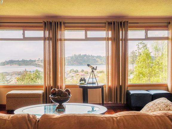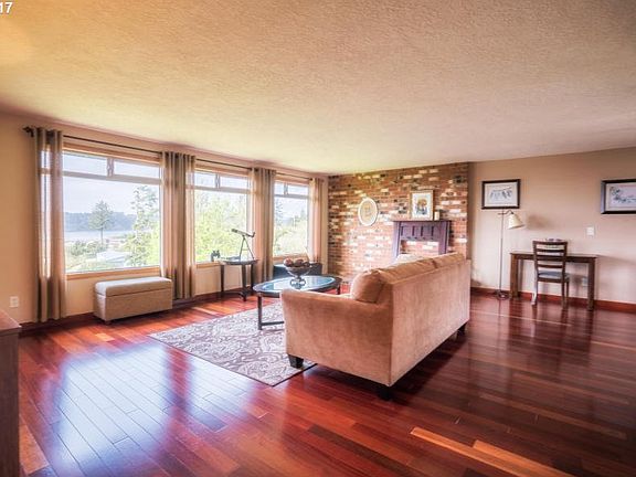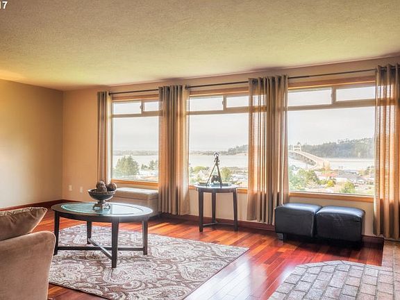 AMAZING BAY, BRIDGE, RIVER, and OCEAN VIEWS! Last house at the end of a private drive! Extra large indoor ocean view hot tub, bar, Brazilian hard wood, granite, over-sized 2 car garage with built in storage. Exceptional master walk in with heat and ironing board. Finished room with exterior door perfect for art studio, home business, or man cave! Close to trail system. Watch tides change,boats come in and out of the harbor & wildlife!