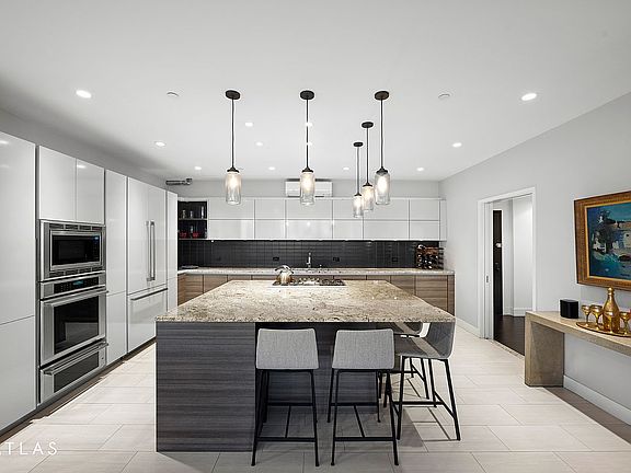 At the heart of the home is an extraordinary great room stretching approximately 31 by 30 feet—a dramatic architectural volume ideal for large-scale art, elegant entertaining, or simply living expansively. Custom millwork, architectural sliding doors, and motorized shades elevate the minimalist aesthetic. A spectacular home for entertaining - wait until your guests hear the acoustics bouncing off the high ceilings as they marvel at the size of the space.