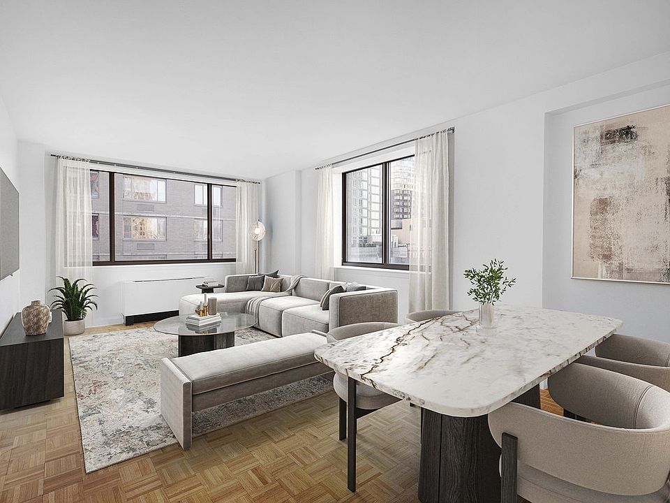 $1,000 Reduced Security Deposit for Qualified Applicants This spacious, light filled 1BD apartment (flex 2) overlooks our private landscaped courtyard garden and boasts ample closet space, along with a dedicated dining area with light wood parquet flooring throughout. The windowed kitchen includes a breakfast bar, polished granite countertops, tile transition flooring, and is equipped with stainless-steel appliances. The Turkish marble tiled full bath includes a large wall mirror, and a recessed mirrored medicine cabinet.
