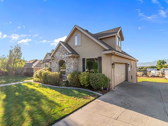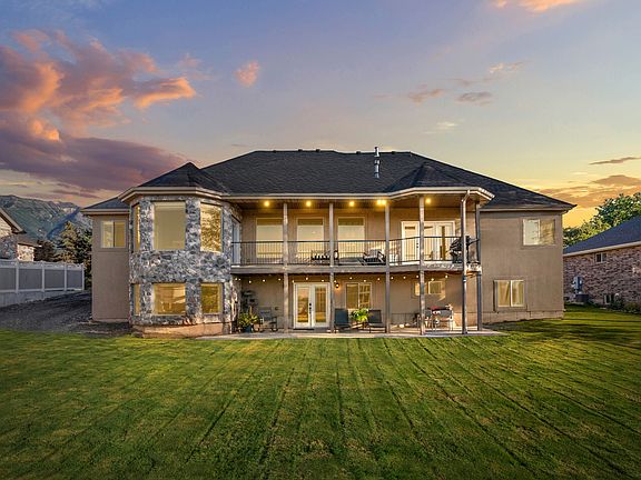 OPEN HOUSE this SATURDAY OCTOBER 11th- 10:30AM - 12:30PM .98 Acres! Bring your horses and animals! There are 2.06 shares of Strawberry Water attached and irrigated through Salem canal. Come tour this rare piece of property and beautiful home in the heart of Salem. Just a couple blocks from Salem pond and in a neighborhood, you have near an acre of horse property! This six bedroom home has beautiful views of the valley, mountains and lake. This home has vaulted ceilings, updated kitchen, fully finished basement with second bath that is unfinished.
