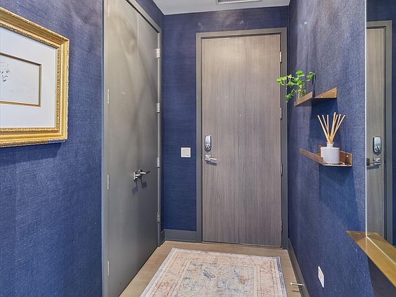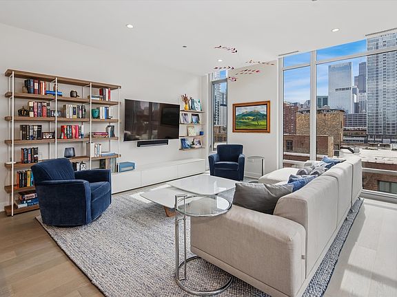 2 DEEDED GARAGE PARKING SPACES INCLUDED! First high floor corner unit available since building's completion in 2019! This spectacular River North home is situated in one of Chicago's most dynamic neighborhoods. Featuring an expansive layout with two private balconies, this residence features floor-to-ceiling, wall to wall windows offering unobstructed urban views and abundant natural light. Enjoy ten-foot ceilings, hardwood floors, and custom built-ins throughout. The chef-inspired, open kitchen is outfitted with sleek Italian cabinetry, marble countertops, and top-of-the-line Wolf & Bosch appliances-perfect for both everyday living and entertaining. An impressive primary suite includes two walk-in closets, a private terrace, and a spa-caliber bath for the ultimate retreat. Two additional generously sized bedrooms-one with an ensuite bath-offer versatility and comfort. A full laundry room and exceptional storage complete this exceptional home.