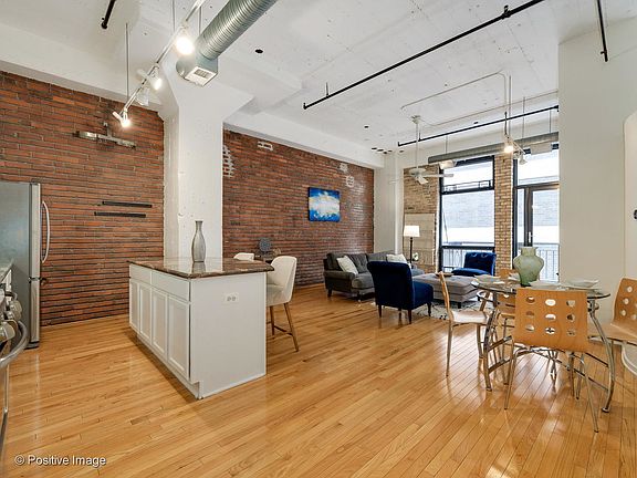 Discover this inviting loft in the Sexton Building, perfectly situated in the heart of River North and just steps from the renowned East Bank Club. This 2 BR, 1 Bath condo has a large and open functional floor plan with 12' timber ceilings and exposed brick. This loft features hardwood flooring in the main living space, a gas fireplace, a HUGE walk-in closet, an in-unit washer/dryer, and additional storage. The kitchen is equipped with great cabinet space, granite countertops, all stainless steel appliances, and a large island for entertaining! The 2nd bedroom is perfect to use as an office for a separate space to work from home, an additional family room, a workout room, or whatever you desire! Enjoy the full amenity building with 24-hour door staff, fitness center, courtyard, and on-site dry cleaners! With a very walkable location in River North, you are STEPS away from the East Bank Club, Chicago's best restaurants, the park, tons of Shopping, access to the expressway, and the Chicago River! 1 garage parking space is available for purchase.