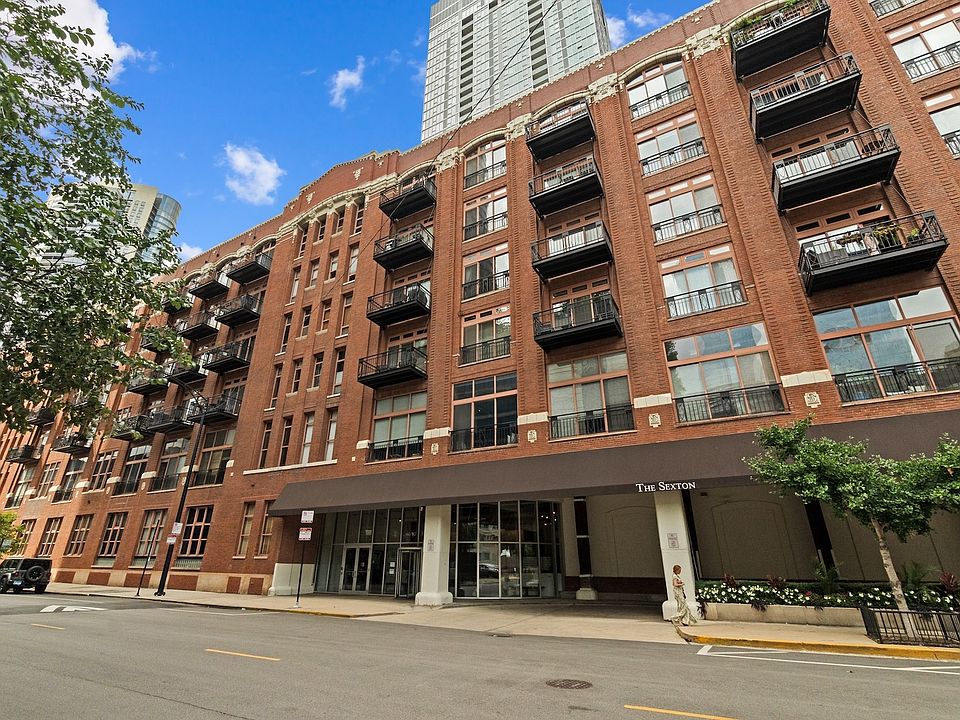Don't miss this fantastic opportunity to own a cozy and character-filled two-bedroom, one-bath timber loft in the highly sought-after Sexton Lofts of River North. Sold as-is and priced to sell, this home is a smart option for first-time buyers, investors, or anyone seeking an authentic loft living experience at an incredible value. The spacious, open layout is filled with character, featuring soaring timber ceilings, exposed brick walls, hardwood floors, and a fireplace in the living room. A private 13-foot balcony extends your living space outdoors, perfect for enjoying city views. The thoughtful floor plan includes two private bedrooms on opposite sides of the unit, each with ample closet space, plus in-unit laundry and generous storage. A full-height storage cage is also included. The Sexton Lofts offers a welcoming lobby with a fireplace, 24-hour door staff, a fitness center, and on-site dry cleaning. All of this in an A+ River North location-just steps from East Bank Club, endless world-class dining, art galleries, cafes, shopping, and the scenic River Walk. Michigan Avenue, the Magnificent Mile, and the Loop's Theater District are just a short walk away, with easy access to trains, buses, and major expressways.