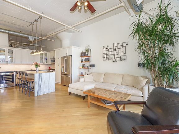 ONE OF THE MOST HIGHLY UPGRADED UNITS FOR A 2 BED 1 BATH UNIT IN THE BUILDING. AMAZING FULL WHITE MARBLE ISLAND, GRANITE COUNTER-TOPS, WHITE HIGH QUALITY CABINETS, AND STAINLESS STEEL UPGRADED APPLIANCES. BATHROOM RE-FINISHED WITH MARBLE STONE TOPS, NEW SINKS AND DESIGNER MIRRORS. FLOOR TO CEILING WINDOWS IN LIVING ROOM, WASHER DRYER, AND VENT-LESS 2 SIDED GAS FIREPLACE. OPEN LOFT FLOOR-PLAN WITH 14' CONCRETE CEILINGS, ORIGINAL BRICK, AND TONS OF LIGHT NORTH EAST WITH NORTH VIEWS OF THE CITY. LARGE BALCONY WITH ROOM FOR A PATIO TABLE AND GRILL. FULL AMENITY BUILD: 24 HR DOOR, ON-SITE MGMT, FITNESS CTR ,DRY CLEANER, LARGE EXTRA STORAGE ROOM FOR UNIT, BEAUTIFUL COMMON SUNDECK ON TOP OF 6TH FLOOR WITH AMAZING VIEWS. RARELY AVAILABLE ON MARKET. PARKING SPOT 163 IN GRAND GARAGE INCLUDED IN PRICE!-ASK DOOR STAFF FOR DIRECTIONS. 2.3 MILLION IN RESERVES. SOLD QUICKLY LAST TIME ON MARKET.