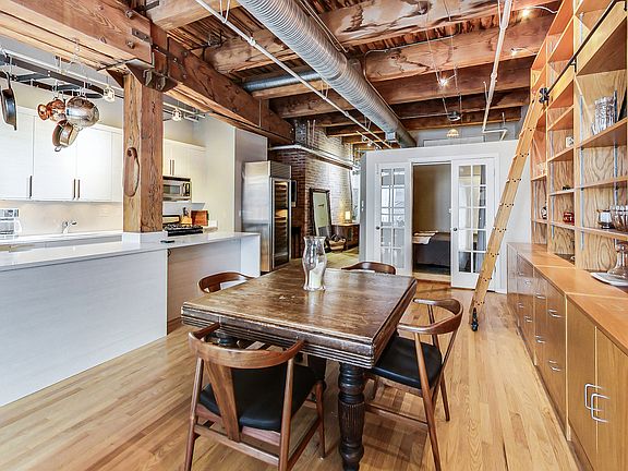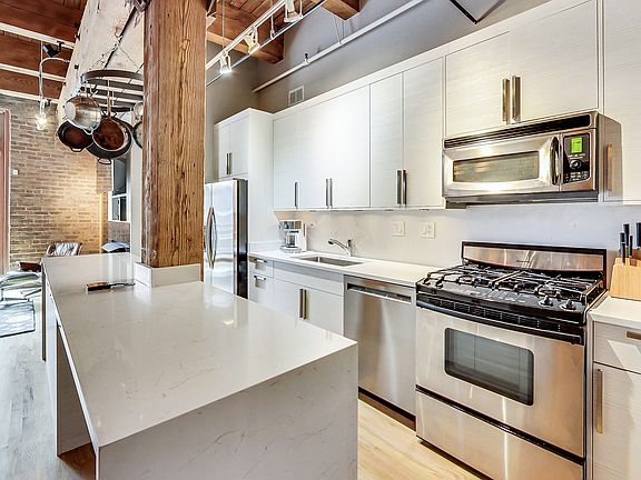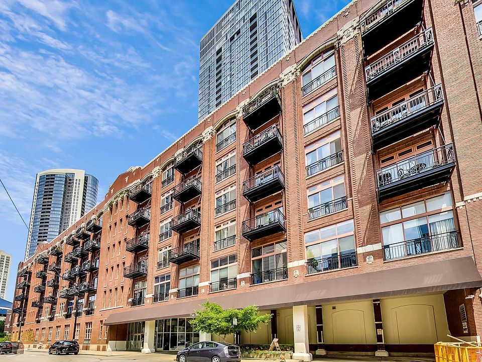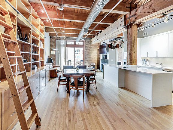 The best deal in the building! 12ft timber ceilings welcome you into unit 509 with southern exposure, hardwood flooring, custom built-in library shelving with ladder. The updated kitchen is ideal for entertaining, with a waterfall quartz island and breakfast bar, and a 120 bottle Sub-Zero beverage refrigerator. Additional highlights include a Bose surround sound system in the Living Room, gas fireplace, custom Primary closet organization. The full guest bath features a spa level steam shower. A large storage space and premier garage parking space are included with the unit. The Sexton is a modern and luxurious River North enclave. This coveted building offers indoor parking, fitness center, dry cleaners, common sun deck and 24hr front desk service. Located in the heart of River North, next to the East Bank Club, restaurants, galleries and so much more.