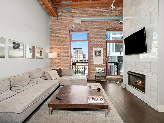 Rarely Available 2 Bed / 2 Bath Duplex Penthouse with Private Terrace Truly unique residence at the Sexton Lofts in premier River North. This two-level penthouse showcases soaring ceilings, exposed brick & timber, hardwood floors, and in-unit laundry. Main floor offers an open kitchen with quartz counters & stainless appliances, spacious dining/living area with fireplace, and balcony. Upstairs, the oversized primary suite features a custom walk-in closet, spa-inspired bath, office/fitness nook, and private balcony. Enjoy a 26'x12' private roof terrace with skyline views. Amenities include fitness center, sundeck, bike room, door staff & more. Heated garage parking available.
