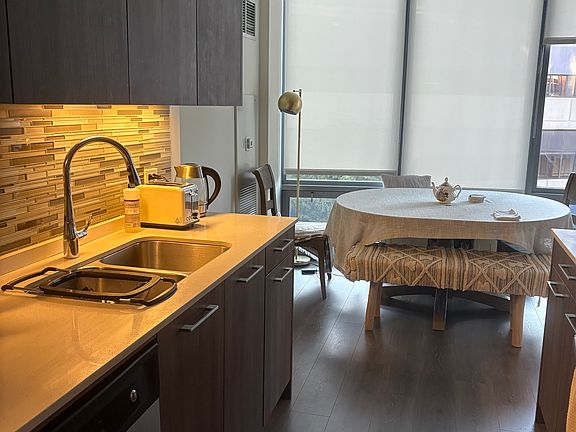 CVS, Starbucks, red/brown line, metro stops are within 5-10 minutes walking. Building has its own nice gym, working space, hot tub, sauna, steam room, outdoor pool and grills.