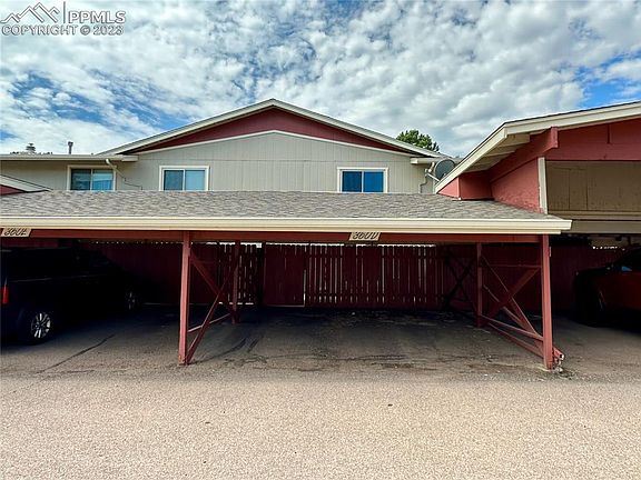 Prime west-side location near Foothills Trail & Ute Valley Park. COVETED Townhomes at Rockrimmon offer superb access to shopping, schools, & I-25. Private clubhouse with indoor pool, hot tub, game room & more. Three-bed, three-bath condo ready for immediate move-in. Close to I-25 for travel, shopping, dining, & hiking. Two assigned covered parking spots & on-site guest parking. Community amenities include a clubhouse with a jacuzzi, pool, sauna, game room, patio, BBQ area, green space, & tennis courts. Low-maintenance property with gas fireplace & quiet back patio. Don't miss out on this opportunity for uninterrupted west-side living! NOTE 1: This home faces Rockrimmon Blvd. While the road noise is faint, some buyers are opposed to it. Please do not write an offer if you cannot handle road noise or traffic. NOTE 2: The carport header is about 6 ft high. If you have a vehicle taller than this height and need to park in the carport, please reconsider making an offer.