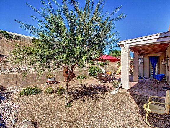 Gorgeous home located in the heart of Oro Valley. Updated and Remodeled. Enter through the all new Custom made security door. New tile flooring and baseboards, plantation shutters, Freshly painted and Beautifully Refinished Fireplace. Open and bright floor plan features kitchen with island, quartz counter tops with slate backsplash, and self closing drawers. Stainless Steel appliances (GE Cafe). Gas range with warming drawer, convection microwave and NEW refrigerator. Large master suite with ALL NEW Remodeled master Bathroom. New double sinks, counter tops, shower and additional vanity. Great backyard with covered patio, pavers and large wall for privacy. Newer irrigation system in front yard. Low E windows, and solar screens. Come take a view!