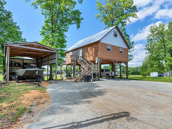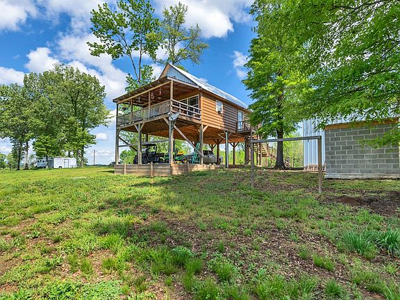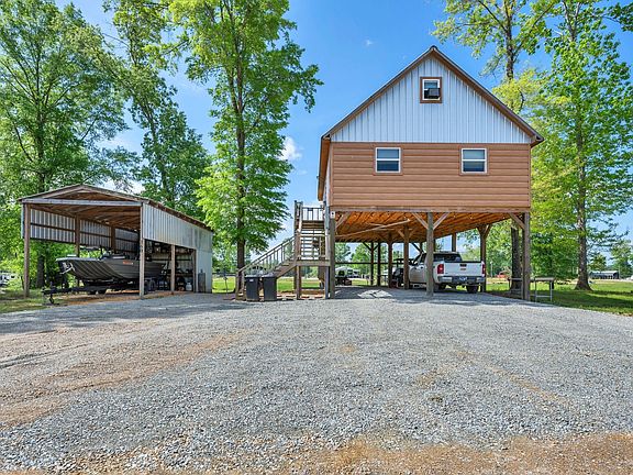 Red Oak Point, a resort development just minutes north of Clifton, TN, features newly built elevated homes and camping lots. This 2022 site-built home, while not waterfront, offers stunning Tennessee River views from its second-story deck, where eagles and passing boats are common sights. Situated on four lots (120 x 160 ft combined), it includes a 14 x 30 x 11 ft RV cover with water spigot and septic pump-out. The elevated home’s footprint is 24 x 36 ft, with a 10 x 24 ft deck.