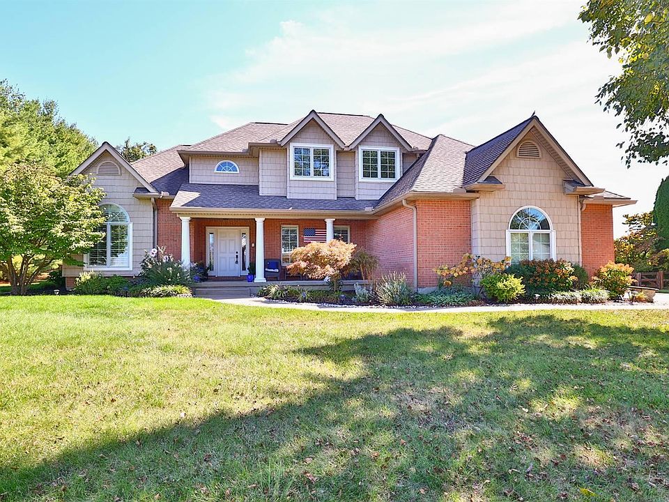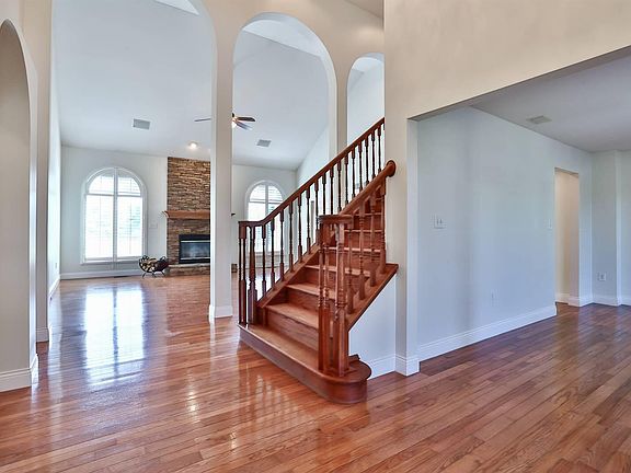 Gorgeous Custom-Built home in sought-after Brentwood Subdivision! This stunning property includes 3 finished levels of 3500+ square feet of living space. Features 4 bedrooms, 3.5 baths, and a 3-car garage. Spacious open-concept design, soaring ceilings, gleaming hardwood floors, and a desirable 1st-floor primary with deluxe ensuite and walk-in-closet. The gourmet kitchen includes a gas cooktop, double ovens, corian counters, tiled backsplash and custom wood cabinetry. Enjoy the Grand Great Room with stacked stone wood-burning fireplace, a private study with French doors, Pella casement windows, and plantation shutters. Additional highlights include built-in Nutone speaker system, two laundry rooms (main & lower levels), and a 9-ft foundation pour. The walkout lower level offers LVP flooring, a full kitchen, gas fireplace, fitness room, and 2 flex rooms that could easily be used as a 5th bedroom, playroom or hobby room. Perfect for an in-law suite. Relax on the covered front porch or retreat to the private patio with a peaceful water feature outback. Nestled on over a half-acre lot. 1-year Home Warranty Included. USDA financing eligible. Welcome Home!