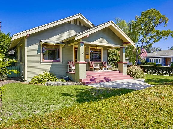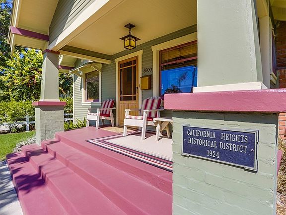 A charming California Bungalow located in the highly sought after historic neighborhood of California Heights. This home has all the character and warmth that you would expect a home of this era to possess. Sit back and enjoy the neighborhood on the inviting front porch. Warm hardwood floors throughout, plentiful mill work, French paned windows and doors and built-in shelves and display cabinets. Living room is accented by a large picture window, a full wall of shelves and cabinets and a wood burning fireplace. The large formal dining room features a bay window and yet another full wall of storage and display cabinetry. The light filled classic kitchen is punctuated by an O'Keefe & Merritt gas stove, garden window over the sink and a French paned door leading to the rear yard. The period style bath has art deco tile, clay foot tub and a pedestal sink. The 1 car garage houses the laundry facility. This home is serviced by air-conditioning and forced air heat.
