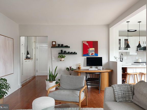 Welcome to The Porter Cooperative, a boutique 28-unit building in the heart of Cleveland Park. Perched on the top floor, this bright and airy south-facing 1-bedroom, 1-bath home offers nearly 700 sq. ft. of thoughtfully designed living space. The updated kitchen features quartz countertops, new appliances, Zia tile backsplash, modern fixtures, and abundant cabinetry, while the versatile L-shaped floor plan allows for separate dining, living, and work-from-home areas. Recent upgrades include a refreshed bathroom with designer tile, new vanity, dual-flush Toto commode, and glazed tub, as well as updated lighting, modern ceiling fans, and plentiful storage throughout. Highlights include a foyer with built-ins with butcher block top, an ELFA-outfitted walk-in closet, and clever storage solutions in every corner. The monthly coop fee of $774.40 covers management, building maintenance, property taxes and the following utilities; water, sewer, heat, hot water, and gas (owner pays only electric). Residents enjoy access to community laundry, a bike room, garden room and private storage on the lower level. Location is everything—steps to the Cleveland Park Metro (Red Line), YES! Organic Market, Streets Market, the library, Target, and so much more. Outdoor enthusiasts will love having Rock Creek Park, Melvin Hazen Park, The National Zoo, and the Tregaron Conservancy just moments away, with Giant and Wegmans a mile up Wisconsin Ave. Unit 404 combines charm, modern updates, and an unbeatable location—an ideal opportunity in one of DC’s most coveted neighborhoods.