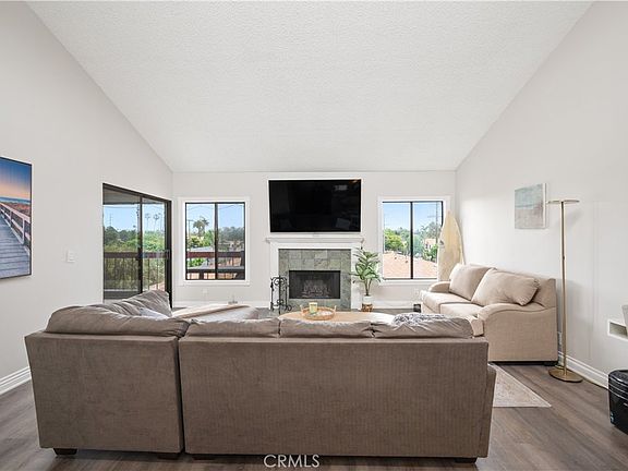 Luxurious Top-Floor Condo in Belmont Heights! This stunning top-floor condominium at 3600 E 4th Street, Unit #306, epitomizes sophisticated urban living. Spanning 1,216 square feet, this 2-bedroom, 2-bathroom gem impresses with its thoughtful layout and luxurious finishes. Inside, discover a spacious living room featuring vaulted ceilings and upper windows, bathing the space in natural light. The living room, complete with a cozy wood-burning fireplace and windows on both sides, offers comfort and views towards the ocean. Seamlessly flow from the living room to the large south-facing balcony, ideal for entertaining or unwinding after a long day. The primary bedroom is a serene retreat with its own balcony access, an en-suite bathroom, and a generous walk-in closet. Vaulted ceilings and upper windows in the primary bedroom continue the theme of light and space, creating an airy, peaceful atmosphere. Both bathrooms are elegantly updated with quartz countertops and modern vanities, ensuring a touch of luxury. Culinary enthusiasts will love the updated kitchen, featuring shaker lower cabinets, granite countertops, and a suite of stainless steel appliances including an electric range, microwave hood, refrigerator, and dishwasher. The breakfast bar adds a casual dining option, seamlessly connecting the kitchen to the living room. Practicality meets style with luxury vinyl floors throughout the main living areas and plush carpeting in the bedrooms. Enjoy the convenience of in-unit laundry, a rare find in this area, and stay comfortable year-round with central heating and a mini-split AC system. Convenience is paramount, with two dedicated parking spaces in the community garage. The parking spots are perfectly situated in a corner, providing extra privacy and storage space, complete with an EV charger. Additional community amenities include a bike storage room and four guest parking spaces, also equipped with EV chargers. Nestled in a prime location, this condo is moments away from the scenic Colorado Lagoon, Recreation Park and Golf, and nearby tennis courts. The vibrant 4th Street Corridor, known for its exceptional shops and dining options, is right at your doorstep. Experience the best of Belmont Heights living in this exquisite condo – a perfect blend of comfort, style, and convenience. Don't miss the opportunity to make this spectacular space your new home. Contact us today to schedule a private viewing and discover the charm of this exceptional property!