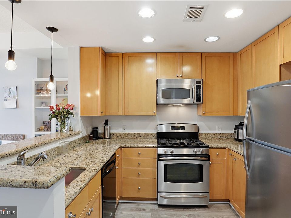 Updated 1 BR / 1 BA Condo with one dedicated underground parking space in the popular Eclipse on Center Park Condo Buildings in Crystal City. Upon entry to unit, you are met by vinyl plank flooring and neutral paint throughout living areas in unit, open concept kitchen with granite counters, maple cabinets, black and stainless appliances including gas stove and breakfast bar that overlooks living area. Off the living area is expansive exterior balcony with clear views overlooking the exciting and abundant surrounding area. Primary bedroom with large window and window treatments that allow additional views, but also privacy when needed and also includes laundry closet with newer stackable washer/dryer. Primary bathroom connected to the bedroom includes granite counter and tub / shower combination. The Eclipse building is surrounded by restaurants, retail, coffee and grocery stores including Lidl that is one block away and Amazon Fresh in nearby Potomac Yard retail location. The building also includes 24/7 concierge service with package delivery and collection, a large gym, seasonal pool that is currently open, usable and rentable party room with rooftop deck and multiple courtyards for exterior space. The property is close to multiple Metro Stations, DCA, Bus Stops and Bikeshares making it a convenient urban experience for commuting purposes. It is also near Amazon HQ2, the Virginia Tech Graduate campus and is a quick trip to Old Town, DC and Shirlington. All the convenience at your doorstep, come and see it today. Property will be available for rent 1/13/26. Please, no pets.