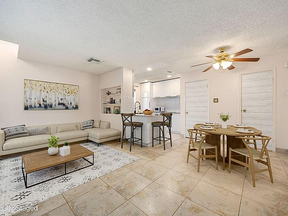 Move-in ready 1-bedroom loft, 1.5-bath condo ideally located near Hwy 59 & Beltway 8. This split floorplan offers an open-concept living space with a cozy fireplace, quartz countertops, breakfast bar, generous custom IKEA cabinetry, and pantry. Beautifully updated using unique finishes such as barnwood-look interior doors, stack stone, faux brick, subway and horizontal glass accent tiles. The ensuite bedroom features a walk-in closet, extended shower, and extra storage. Enjoy in-unit laundry connections, a private patio, and assigned carport parking. Recent updates include new double-pane windows, doors, appliances, and an inside AC unit for energy efficiency. Refrigerator and window coverings convey. Community perks include gated access, 2 pools, clubhouse, shaded green spaces, and a pet-friendly atmosphere. Incredible location perfect for comfortable living with convenient city access. Move-in ready!