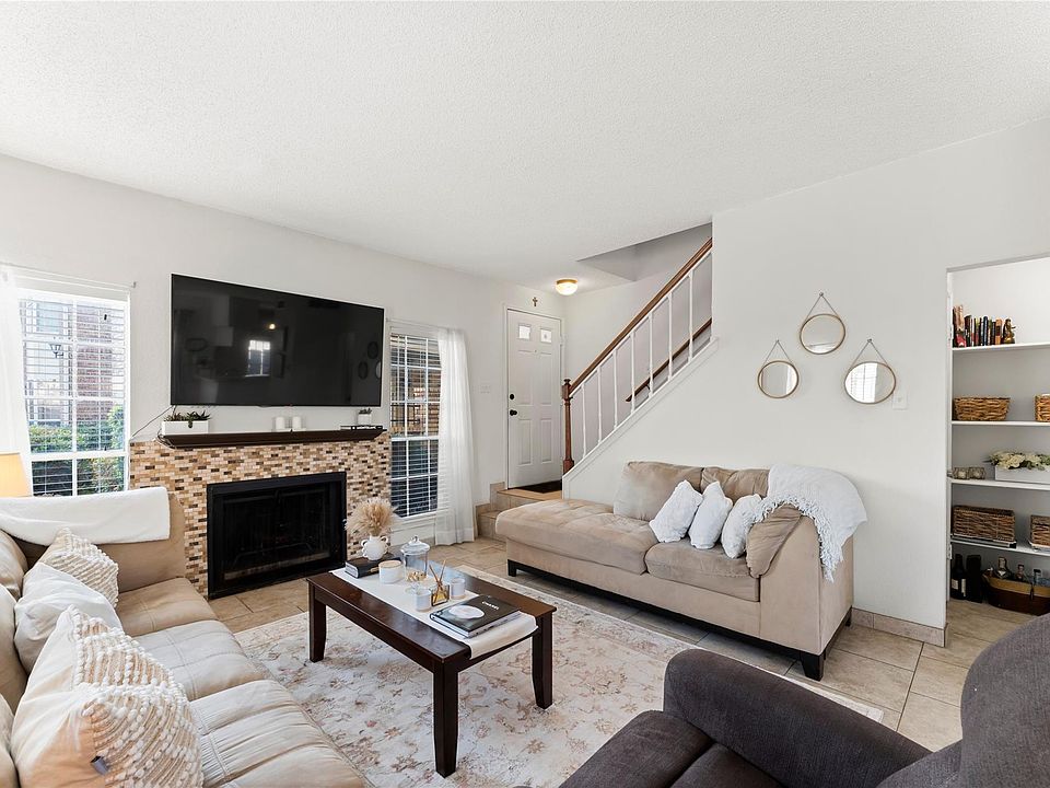 Welcome home! Discover this beautifully updated 2-bedroom, 2.5-bathroom condo located in a secure gated community! Upon entry you'll notice tile and updated finishings throughout, no carpet! Spacious living room with tastefully tiled wood-burning fireplace welcomes you to the kitchen with stainless appliances and generously sized pantry. Each bedroom offers its own bathroom, providing comfort and privacy for everyone. Enjoy private mornings/evening on the covered patio. Assigned covered parking is included, with plenty of additional parking for guests. Located just minutes from the Galleria, with quick access to Westpark Tollway, Hwy 59, and Beltway 8, this condo offers unbeatable convenience. The monthly HOA covers water, cable, trash, and access to community amenities. This is is truly a turn-key home ready for it's new owner!