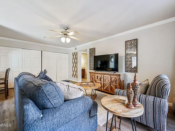 Beautifully renovated fully furnished ready ''1st floor'' condo in quiet part of community. Featuring granite counter tops, Crown Molding, new flooring, paint, baseboards walk in shower and more. Take a short walk to the two heated community pools get a workout in the gym, or take a 5 minute drive to Fashion Square mall, restaurants and all that the Scottsdale lifestyle has to offer!
