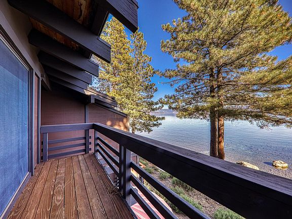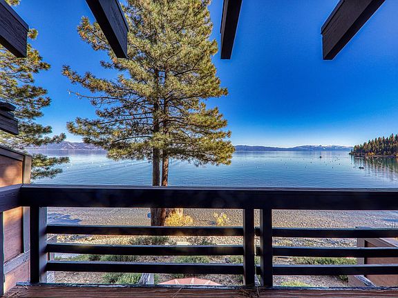 Breathtaking lakefront living in the heart of Chinquapin. Offered at $4,425,000, this rarely available middle-unit lakefront residence delivers sweeping, unobstructed views of Lake Tahoe from nearly every room. With approx. 2,700 sq. ft., 4 bedrooms + loft, and an incredibly functional multi-level layout, this home is built for hosting family and friends in one of the region’s most sought-after communities. The main living level features dramatic open-beam ceilings, expansive lake-facing windows, and seamless indoor/outdoor flow to the large waterfront deck—perfect for coffee at sunrise or sunset dinners over the water. The generous dining area and warm, lodge-style kitchen make entertaining effortless. Upstairs, the lakefront primary suite offers vaulted ceilings, a private balcony directly over the shoreline, and panoramic views that feel like you're floating above Tahoe’s turquoise water. Additional guest bedrooms are spacious and bright, with wooded outlooks and classic Chinquapin character. The loft provides excellent overflow sleeping or a cozy retreat for kids. A private indoor sauna, abundant storage, and thoughtful separation of spaces create comfort for large groups. Outside, the home is steps to the lake, beach, pier, and the community’s extensive amenities—including tennis, pickleball, pool, trails, marina, and seasonal buoys. This is an exceptional opportunity to own true lakefront in a gated, low-density 95-acre resort setting. A legacy Tahoe property with unmatched views, steps-to-the-water access, and room for everyone.