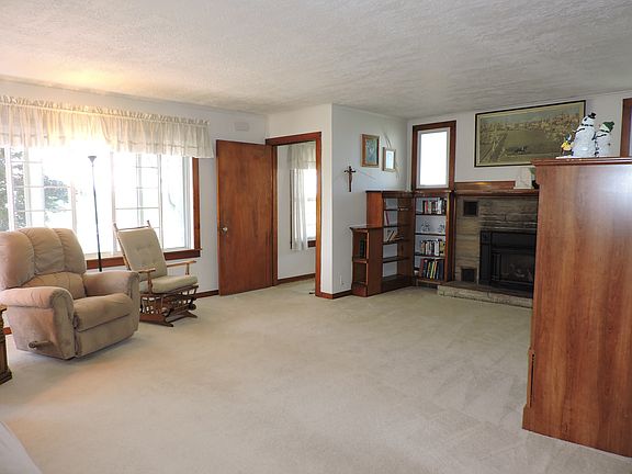 An Inspired Choice...Vintage charm meets updated convenience in this awesome 5 bedroom, 2 story home on 3 acres! The wrap-around front porch is the perfect place to greet guests and opens to the spacious living room with neutral décor and a charming brick fireplace. A wide arched doorway leads to the updated eat-in kitchen with wood flooring and gorgeous solid surface counters. Past the adorable built-in cabinet with glass doors, you will find the huge dining with wood floors. This space would be perfect to host your next holiday party! 2 main floor bedrooms and 3 upstairs offer plenty of space for your family to spread out and the main floor laundry is a great convenience. The 3 car 30x40 pole barn functions for parking as well as storage and workshop space. Don't miss out on this great country home and it's quiet 3 acres. Call today!