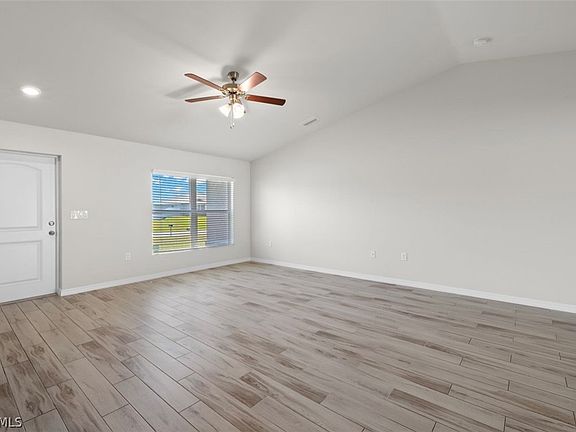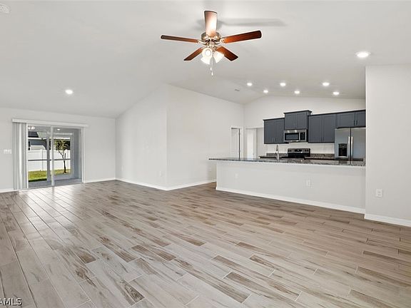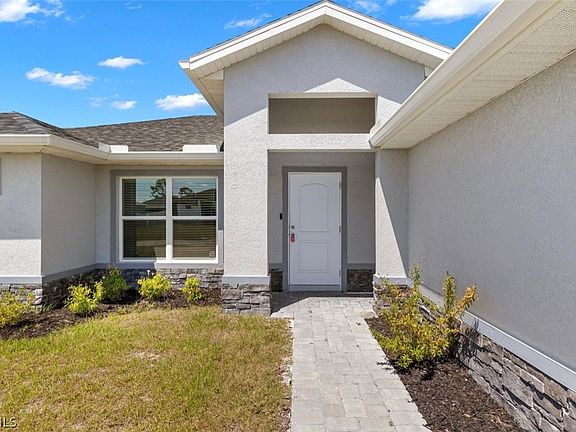Check out this beautiful newer construction property in highly desirable Cape Coral! This beautiful 4/2/3 features over 1700 sq ft. of living space. Home features upgraded master bath area with separate his and her vanities and dual shower heads, upgraded doors, stone veneer on front of house, paver driveway/entryway/lanai and screened in lanai, elongated toilets, stainless steel appliances, a massive 3 car garage and the home also includes a Ring Doorbell! Home also features remainder of 10-year structural warranty. Don't miss your chance this won't last long!