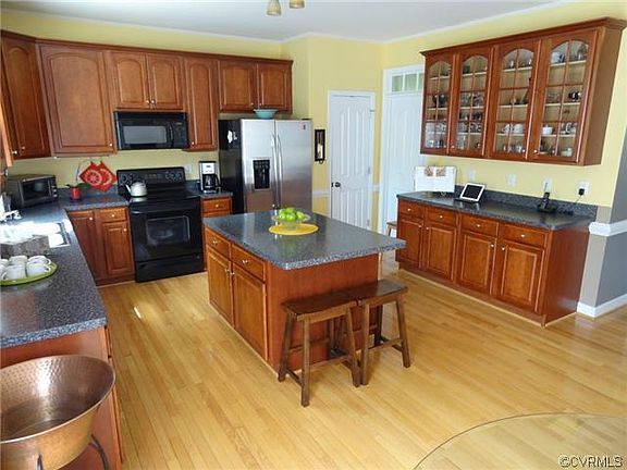 "This is a beautiful colonial home in the sought after Lenox Forest subdivision in Chesterfield County! The house sits beautifully on a large (0.88 acre), flat, private, cul-de-sac lot! Hardwood floors throughout the first floor. The eat-in kitchen features 42"" cherry cabinets, island, pantry, hardwood floors, and new fixtures. The gas fireplace sits in the family room which also has crown molding. The living room features columns and crown molding. A bay window offers plenty of natural light for the dining room that also has crown and chair rail molding. All bedrooms have wall to wall carpet and ceiling fans. The master has a walk-in closet and a master bath with tiled floor, his & her raised vanity, large jetted tub, separate stand up shower and a separate vanity for her. The exterior includes a large rear deck perfect for entertaining, double wide front porch, paved drive, and a 2-car side entry garage. Gas heat downstairs and heat pump on the 2nd level. There is also a new hot water heater for the house. This a very private cul de sac lot and there is a HUGE BUFFER behind property. Come see for yourself. Home Sweet Home!!"