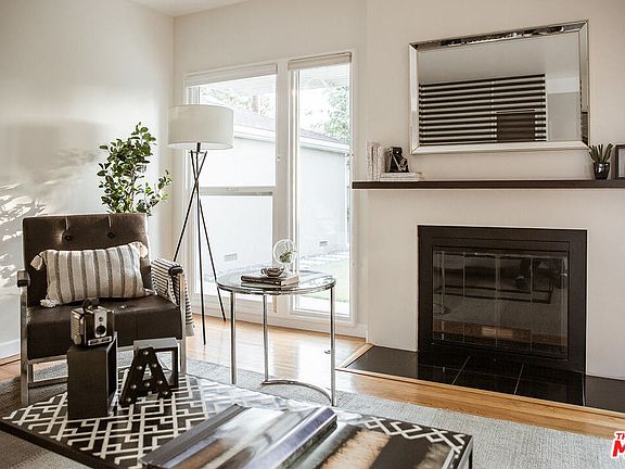 Grab your own piece of sunny Los Angeles in this corner-lot residence made for today's modern living. Picturesque tropical zero-scape surrounds the front yard with a welcoming stone line walkway. Step through the front door to an inviting interior layout where natural hardwood floors are underfoot, pairing with newly painted walls with windows allowing an abundance of natural light. The open space concept allows for easy inside entertaining with a recessed lit living room and fireplace. Outside is a welcoming view to a covered sitting lounge area with decorative fireplace. The outdoor scene is a mix of bamboo, flowering plants and stone lined paths outlining the grassy backyard and includes a side yard for your future organic garden space. The renovated chef inspired kitchen includes: stainless steel appliances and refrigerator, seamless granite counter tops with a breakfast bar and plenty of storage for your chef tools. Separated laundry room located off the kitchen area with sink & front loading washer and dryer. Detached two car garage with extra overhead storage and space to tinker. This home offers three spacious bedrooms, extra hallway storage spaces and two baths. Come on over!