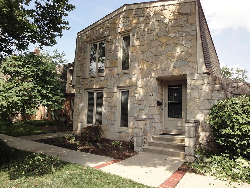 Wonderful updates in this immaculate two story END UNIT condo in desirable Normandy Square of Upper Arlington! Impressive Living Room with gorgeous corner style slate fireplace with gas logs, beautiful Crown Molding and large deep windows. Good size Dining Room, with sliding door to large private Uniblock Commercial grade patio with custom wood exterior door, opens to fantastic newer Kitchen with stainless steel appliances, newer cabinets, first floor Laundry Room and Half Bath! Upper floor has 2 large Bedrooms, owners has attached Bath and large closet-Hall with second Full Bath, Linen Closet and entry to large 2nd Bedroom with great closet space! Detached one car garage, with entry from patio! Truly great location near schools, OSU, downtown and parks! PERFECT!