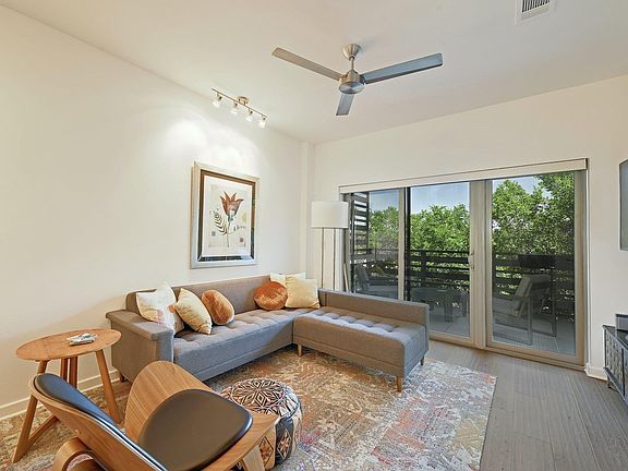 Spacious and modern condo on South Lamar has 1 bedroom with an en suite bathroom plus an additional small bedroom that is best used as an office or guest bedroom. There is also a half bath for guests. The beautiful kitchen opens to the living and dining space. Enjoy evenings on your private balcony overlooking the treetops below. The large primary bedroom features remote controlled window shades and built-ins within the primary closet. Condo comes unfurnished. This light and bright unit is on the 3rd floor of the GreenView condo complex, a high end building with tons of amenities in the heart of South Austin, including a huge infinity pool with outdoor kitchen overlooks the greenbelt and a dog park. One reserved, gated garage parking spot included. Refrigerator, washer, dryer included. Pop out your front door to grab a coffee at Barley BeanCoffee or dinner at Easy Tiger next door. Be on 71/290, Mopac or 360 within minutes. Or head to South Congress or Downtown, all within a 10-15 minute drive. Location cannot be beat! HOA requires lead time to schedule move-in date, a $500 refundable security deposit and a $205 move-in fee paid to the HOA.