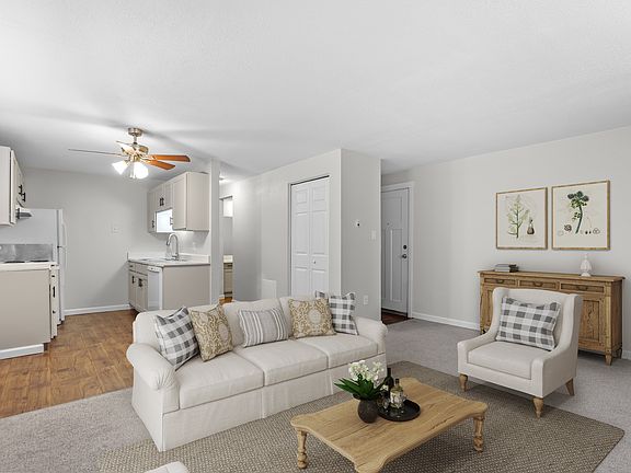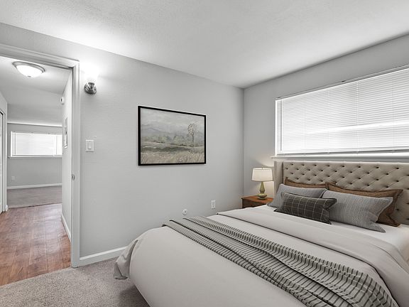 Tucked just off Highway 285, these thoughtfully updated 1- and 2-bedroom apartments offer a seamless blend of comfort, style, and everyday convenience. Inside, rich LVP flooring flows throughout the living space, complemented by plush carpeting in the bedroom for a cozy touch. The galley-style kitchen features striking dark shaker cabinets, white appliancesincluding a dishwasherand a full pantry, perfect for home cooks and organized living. A linen and coat closet provide added function, while the Hollywood-style bathroom offers privacy and charm with its separate vanity and beautifully tiled shower/tub combo. With controlled building access, interior unit entry, on-site laundry, and off-street parking, you'll find everything you need to feel right at home in this peaceful, well-connected community.