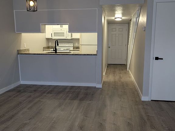 A complete remodel has been completed in July 2025 including new paint and new vinyl plank flooring throughout the entire unit. Kitchen updates include all new countertops and cabinets. Bathrooms were updated with new tile shower stalls and new plumbing fixtures. New light fixtures and window treatments complete the modern contemporary look and feel of the whole unit. But wait--the private exterior patio area has been updated as well. Pavers and landscape rock have been installed with weed barriers for low maintenance and new pressure treated lumber was added to the privacy fence along with a fresh coat of paint.