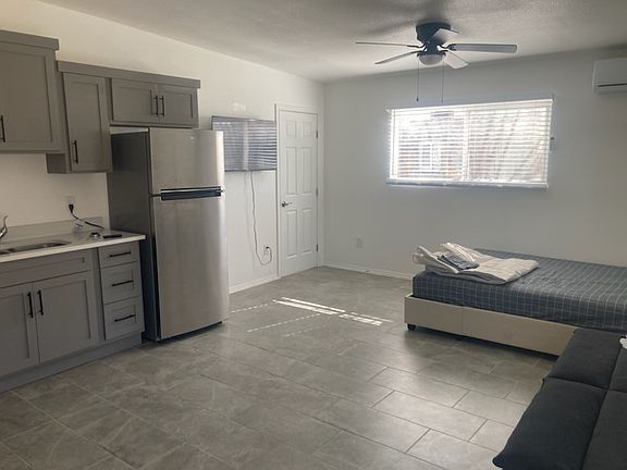 Ideal cozy studio dwelling centrally located for singles or couples looking for functionality and hassle-free living. This studio offers a perfect blend of style comfort and convenience in a prime location. Enjoy the perfect indoor temperature year-round with efficient air conditioning and cozy heating system. Semi furnished includes a comfy queen size bed. A TV with Roku for you to enjoy streaming services like Netflix, Amazon video, Hulu, Disney+ and apple tv to enjoy your favorite shows and or movies. High Speed connectivity ideal for remote work, ensuring you stay connected. Beautiful kitchen area with custom made cabinets, and quartz. Stainless steel appliances included. Full size modern washer and dryer included. Parking spot located right in front of the unit. Conveniently located near Ft. Bliss and US 54. Minutes away from 5 Points Entertainment District. Five minutes away from The Junction Brunch House, Manhattan Heights Tavern and Grill, Kiki's Mexican Restaurant and much more.