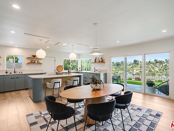 This stunning, gut renovated mid-century completed in 2023, is the bespoke home of your dreams. The cinema-worthy canyon views stretch the entire length of the property, bringing the gorgeous lush hillside right inside. Custom-detailed finishes in every corner make this home a dream to live in offering the ultimate experience in efficiency. The marine-colored custom kitchen will impress, while the swanky, original rock fireplace in the living room will help decompress. The private yard is the perfect spot to entertain, featuring a hot tub, fire pit & drought-tolerant landscaping. Offering a seamless floorpan with 3 bedrooms, all with custom closets and ensuite bathrooms, as well as a large powder room. Attached 2-car garage with built-in storage. Too many custom upgrades to describe. Come see for yourself. This is definitely not a builder boring home. If you are looking for style, comfort and jaw-dropping views, look no further. All this in the Roscomare Road school district!