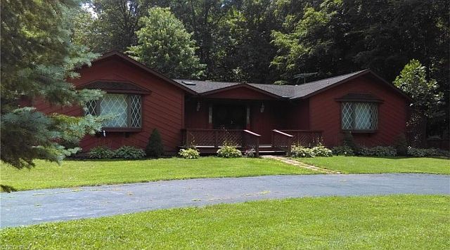 One of a kind picturesque cedar ranch, nestled on almost 2 level wooded acres is nature lover;s paradise. Newer dimensional roof with skylights, installed in 2015. Horseshoe driveway with outdoor shed. Front porch entrance through black rod iron leads into the foyer with double closets, boasting a spacious open floor plan and a beamed cathedral ceiling. Step down into a welcoming living and dining room. Plenty of large Anderson casement windows, lots of natural light, and high ceilings throughout. The kitchen and family room have french doors leading out onto the patio with beautiful park like setting. The family room has brick/wood wood burning fireplace that was never used, 10 foot ceiling and wood floor. Comfort and convenience with 3 full bathrooms and laundry room. Great tasting water large eat-in kitchen with center island with new electric cook top opens into the family room. 2 over sized bedrooms have plenty of closet space including one walk-in and brand new laminate flooring. Third bedroom was made into an inviting family room during building. Plenty of room here to expand and grow on this tranquil, peaceful, and quiet Bath Township Estate. Close to Revere schools and shopping.
