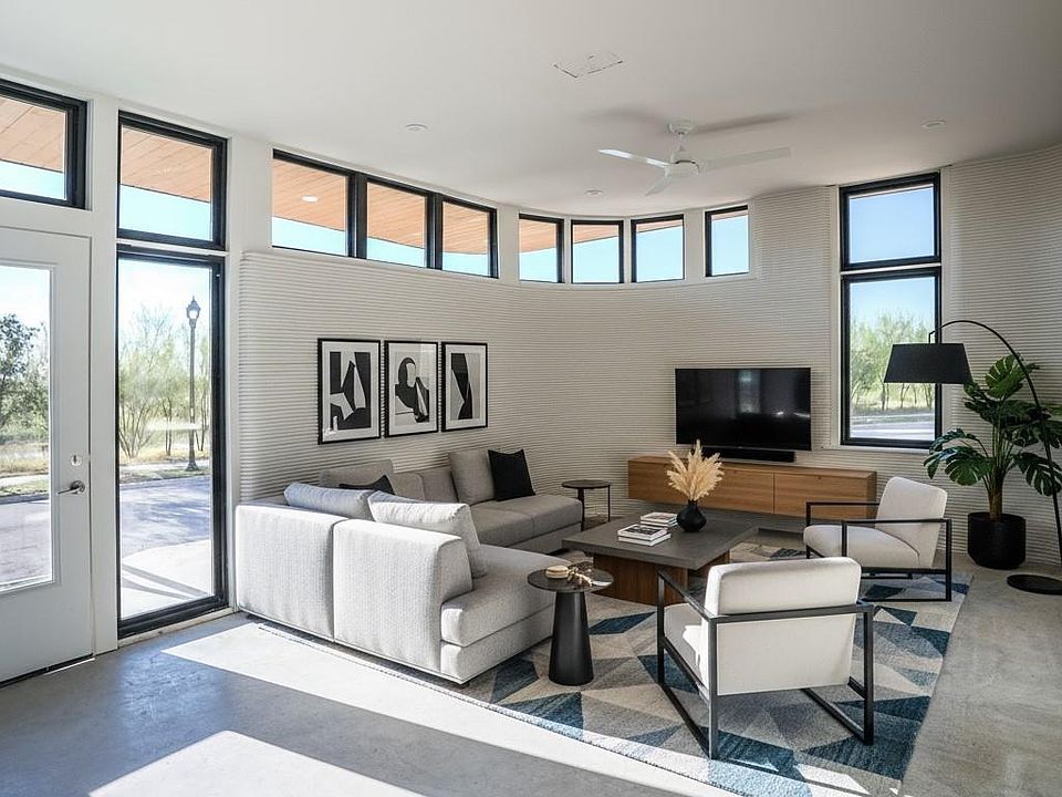 Inquire about preferred lender incentives. ICON’s newest 3D-printed homes are coming to Mueller! Designed by renowned Michael Hsu Office of Architecture and overlooking Mueller’s Southeast Greenway, these homes are the perfect combination of beautiful design, ICON’s resilient construction and an incredible location. This 2-bedroom home features an open-concept layout and modern design. Natural light shapes and enhances the living spaces with floor to ceiling glass facing the private yard, clerestory windows in the living room and oversized windows throughout the rest of the home including views over the Southeast Greenway and Morris Williams Golf Course. The first floor features an inviting open floor plan with a sleek and modern kitchen, sculptural dining alcove and light-filled living room overlooking a large private yard. Upstairs is the exceptional primary suite with massive windows, a beautiful en-suite bath and an additional bedroom and bathroom. The home’s exquisite finishes blend natural materials and luxury living, including polished concrete floors, quartz countertops, wood flooring, Andersen windows, Bosch appliances and standing seam metal roof. ICON builds high-performance, durable homes using robotic technology and proprietary cementitious-based material. Designed and engineered for precision, speed and resiliency, the innovative technology delivers homes with higher levels of insulation that decreases the home’s temperature fluctuations in the summer and winter, and the wall systems are designed to resist water, mold, termites and fire. Conventional construction methods for second story, roofs, windows and doors with elevated finishes are then used to complete the homes. Located in a coveted section of the Mueller community with expansive views of the Southeast Greenway, the innovative homes will be walking distance to restaurants, shopping, parks and more.