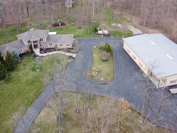 This stunning 5-bedroom, 4-bath stone home located at 3600 Township Rd. 27 in Bluffton, OH, offers luxurious living on a 9-acre wooded lot. It features a gourmet kitchen , a custom shower, a wood-burning fireplace, and a finished basement, perfect for comfort and entertainment. Outside, you'll find a spacious 70 x 100 steel-framed building with concrete floor, large overhead doors, and a dock door with a ramp, ideal for storage, hobbies, or business needs.
