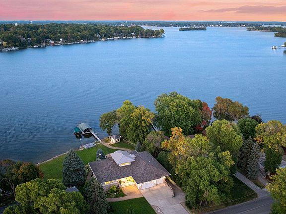 Lake Minnetonka Lakeshore! Artisan-style home featuring open, light-filled design with a blend of natural elements including, wood, tile and stone. Modern living with two main floor bedroom suites, great room with wall of windows, hardwood floors and two-sided fireplace. Step out to the lakeside porch and deck and enjoy the panoramic views of the lake. Escape to the upper-level den/retreat space with private deck. Entertain in style in the walkout lower level featuring family room, bar/party kitchen and two additional bedrooms and baths. Level lakeside yard with firepit, boathouse/studio and over 100 feet of sandy lakeshore with miles of Upper Lake views. Prime location minutes to restaurants, parks, trails, and shopping. Award-winning Westonka Schools.