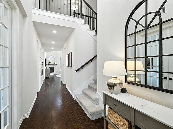 Built by Ashton Woods, this stunning home is located in the highly sought-after Canyon Falls community within Argyle ISD. The elongated foyer opens to a private study with built-ins and French doors, while the gourmet kitchen offers granite countertops, a large eat-in island, that flows seamlessly into the family room with its dramatic two-story stone fireplace. Hardwood floors run throughout the main level. Motorized shades add ease and sophistication to this beautiful home.