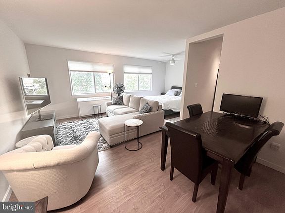 OPEN HOUSE CANCELLED FOR JULY 2. Fully renovated stylish studio in the solid brick-and-concrete Stratton House Condominium, offering quiet, low-maintenance living in a highly convenient prime Arlington location. Ideal for first-time buyers, commuters, students, military, or extended-stay guests. This smartly designed unit features a defined sleeping/living layout, Pergo floors, stainless steel appliances, quartz countertops, gas range with hood, and a fully updated bathroom with a tiled shower and built-in bench. Low $559/month condo fee includes all utilities except internet, 2 parking passes + 1 visitor pass, pool, EV charging, bike storage, personal storage bin, BBQ area, and community laundry. Recent building and infrastructure updates include: new roof, new chiller room piping and insulations, pool house renovation, and lighting retrofit. Located on a quiet cul-de-sac just off Glebe Rd and Route 50, about a mile to Ballston Metro, minutes from TJ Community Center, shopping, theaters, dining, public transportation, and major commuter routes. Available immediately. Furniture can be included in sale. Additional street parking available.