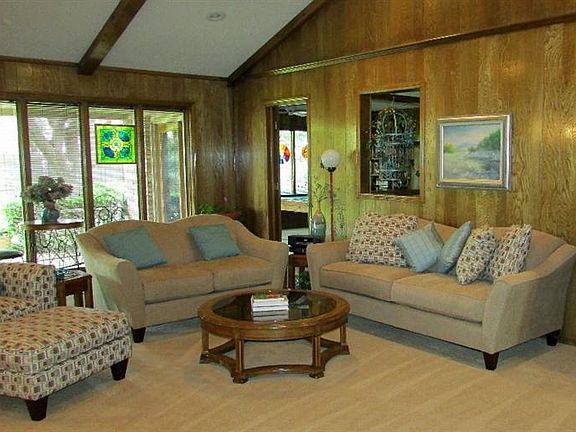 Floor to ceiling windows in the huge living area, game room (or office) and breakfast nook provide a wonderful view into the beautifully landscaped fenced backyard & patio. Enter the tranquility of this spacious home. It's in excellent condition. Neat & clean.New tile flooring, disposal, toilets, some faucets & some fresh paint. Corner lot with beautiful mature landscaping. Lots of storage. Aluminum siding.
