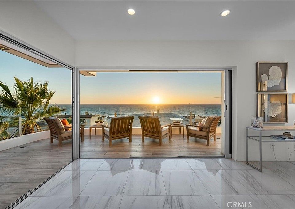 The lower level serves as a versatile “beach room” with soaring ceilings, a full bath, and direct access to an outdoor patio complete with a shower—perfect for rinsing off after a day at the beach. This entertaining space offers effortless indoor-outdoor flow and easy access to the sidewalk leading straight to the ocean. And don’t overlook the home’s rare three-car garage—a coveted feature ideal for storing cars, surfboards, and beach gear.