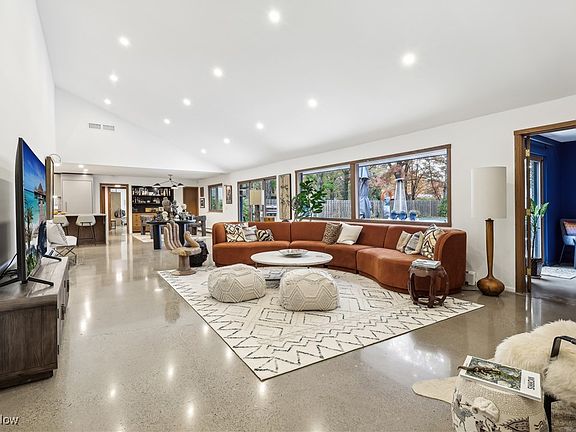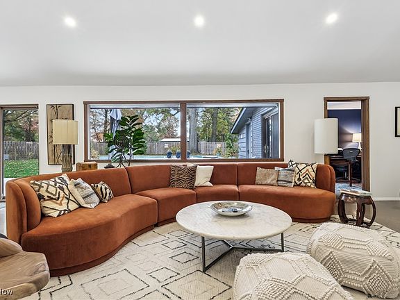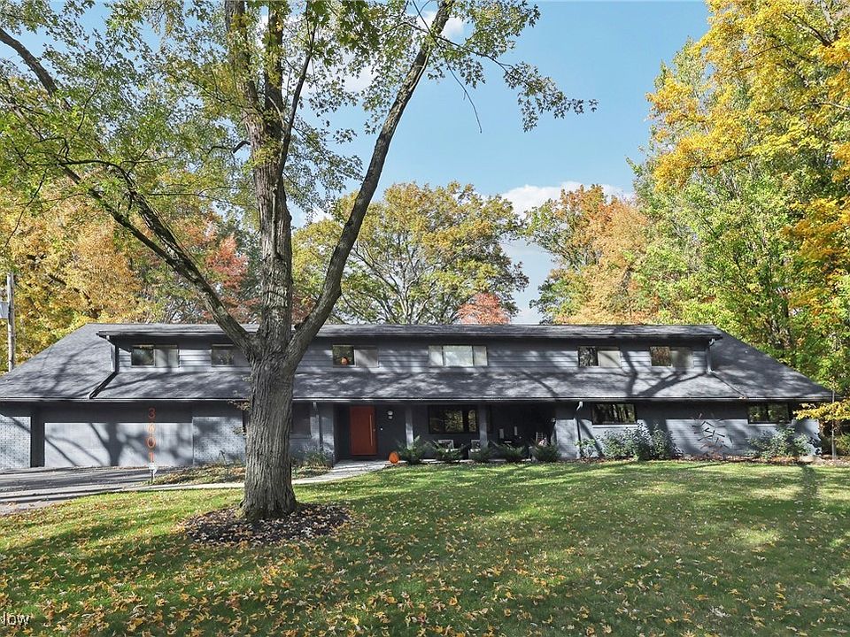 Discover this stunning mid-century modern masterpiece, fully remodeled and expanded in 2023 by Cleveland designer Greg Morris. Originally a ranch, this layout has been transformed into a sleek two-story mid-century modern home with an open layout and polished concrete floors. The chef’s kitchen, designed for entertaining, boasts a refrigerator, freezer, 2 sinks, 2 dishwashers, double ovens, and a wine fridge. Adjacent, a mudroom offers additional prep space and fridge, and the formal dining room accommodates up to 14 guests. The bar room offers a complementary setting to enjoy coffee or your favorite beverage. All 3 first floor bedrooms have serene views of the woods and ensuite bathrooms that were completely remodeled down to the studs. A private office with entry to the pool area completes the first floor layout. Upstairs, a spacious movie/game room and a 4th bedroom with a luxury bath and large walk-in closet await along with potential to add a 5th bedroom. Outside, relax by the 30x17 heated saltwater pool or around the brick fire pit. The oversized 2 car garage has plenty of room for your toys and the driveway can easily accommodate over 12 cars. Excellent location with immediate access to 480 and 77. Just 12 minutes to downtown and 15 minutes to the airport. A full list of updates and features is available upon request. Homes of this stature are rare - set up your showing today!
